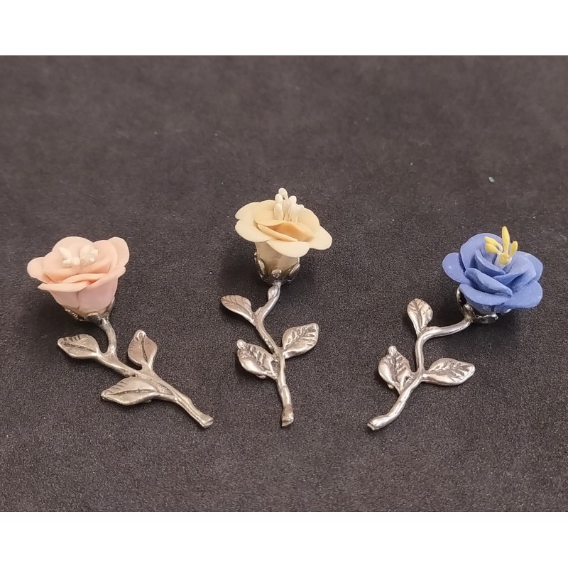 Fleurs en céramique et argent 800 miniatures Set 3 pcs