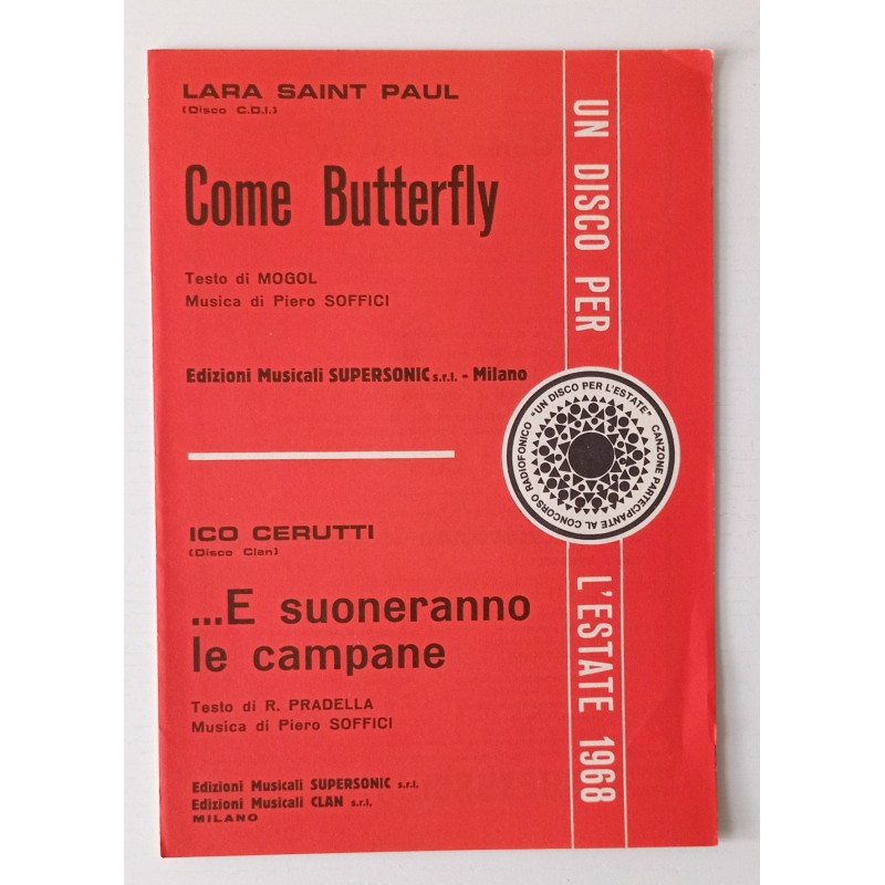 Lara Saint Paul Viens papillon - Ico Cerutti Et les cloches sonneront Partition musicale 1968
