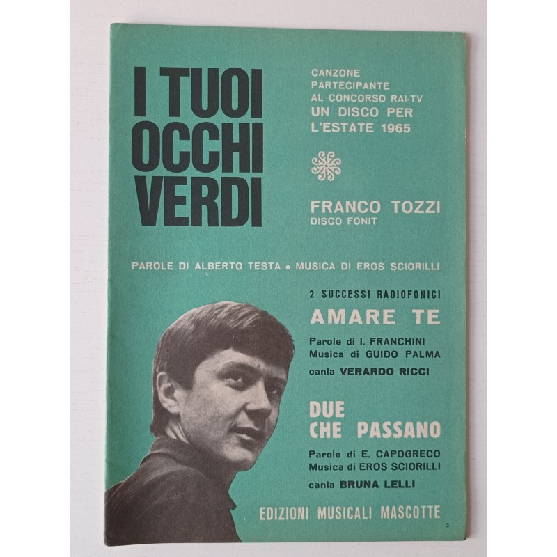 Franco Tozzi I tuoi ocche verdi - Amare te - Due che passano Partition musicale 1965