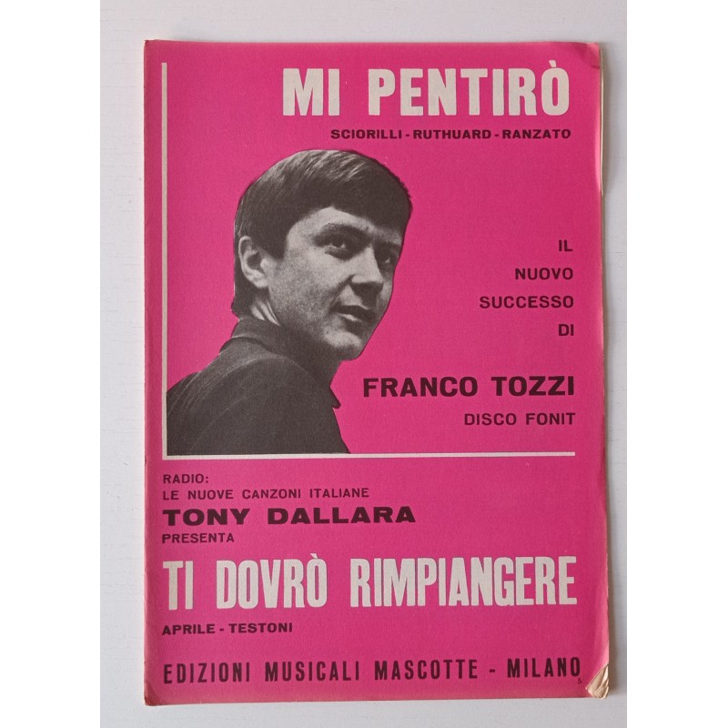 Franco Tozzi Mi pentirò - Tony Dallara Ti dovrò rimpiangere Partition musicale 1965