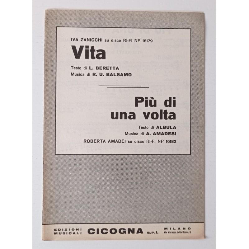Iva Zanicchi Vita: Roberta Amadei Plus d’une fois Partition musicale 1967