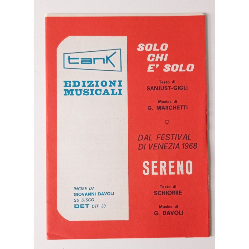 Giovanni Davoli Solo chi è solo - Sereno Spartito musicale 1968
