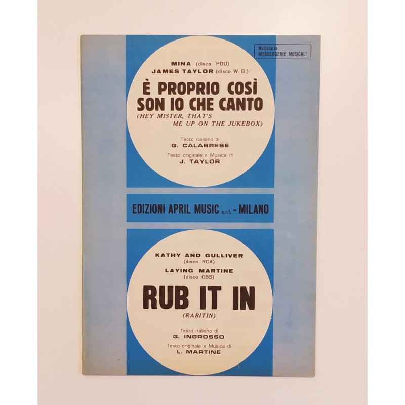 Mina / James Taylor E' proprio così son io che canto / Kathy et Gulliver / Lay Martine Frottez-le en 1972
