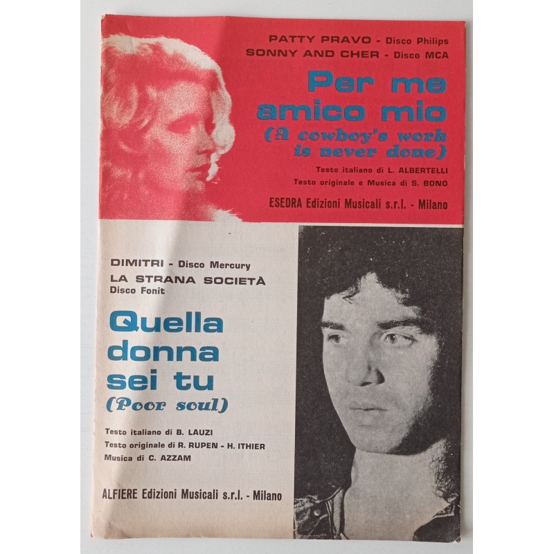 Patty Pravo Per me amico mio - Dimitri Quella donna sei tu Partition musicale 1973