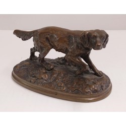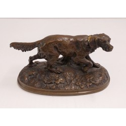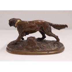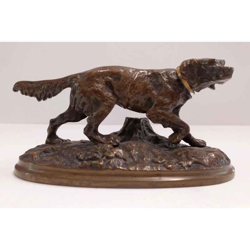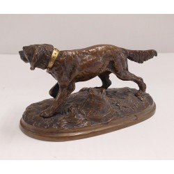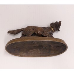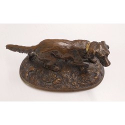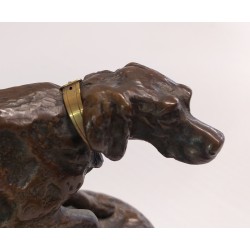 Chien de chasse en bronze avec collier d’or sculpture animale début 900