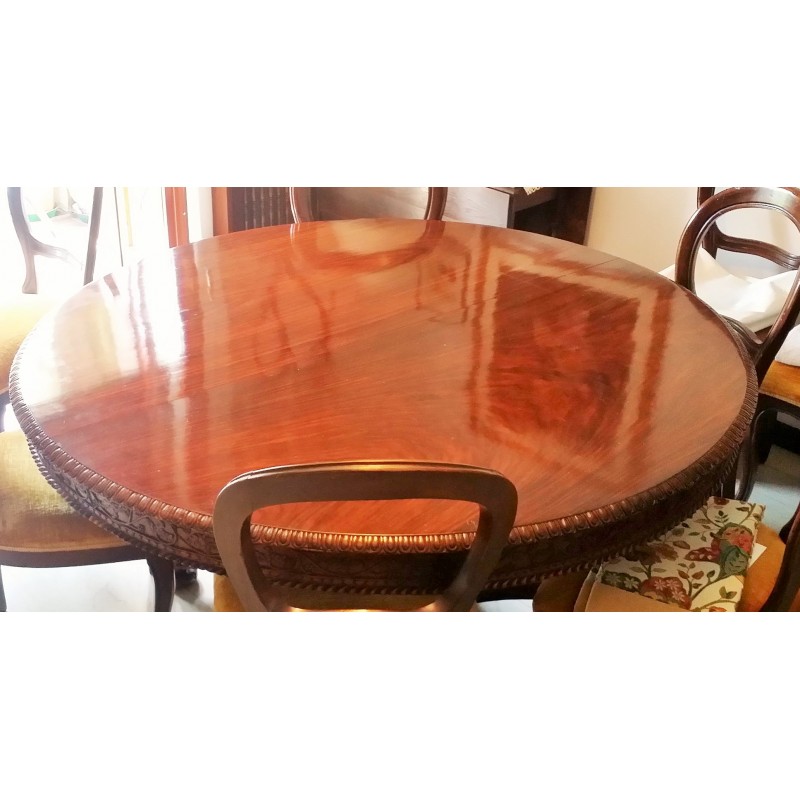 Table en palissandre à plumes D.150 bord incrusté des années 50
