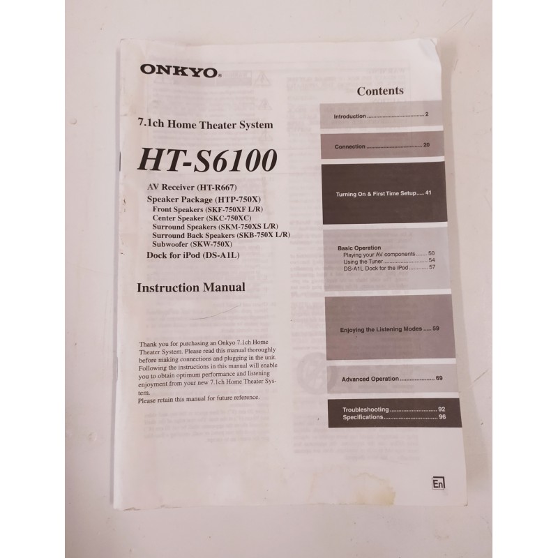 Mode d’emploi en anglais pour Onkyo HT-S6100