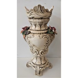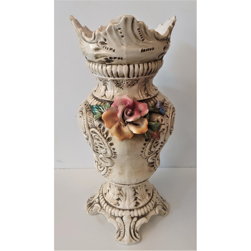 Vase en céramique ciselée avec application florale fabriqué en Italie
