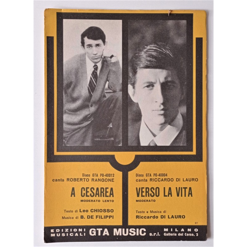 Roberto Rangone A Cesarea - Riccardo Di Lauro Verso la vita Spartito musicale 1966