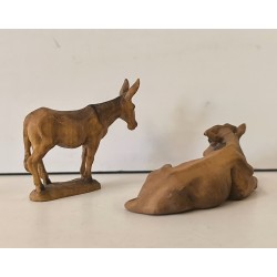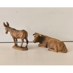 Anri Bue e Asinello statuine presepe in legno 7,5 CM Vintage