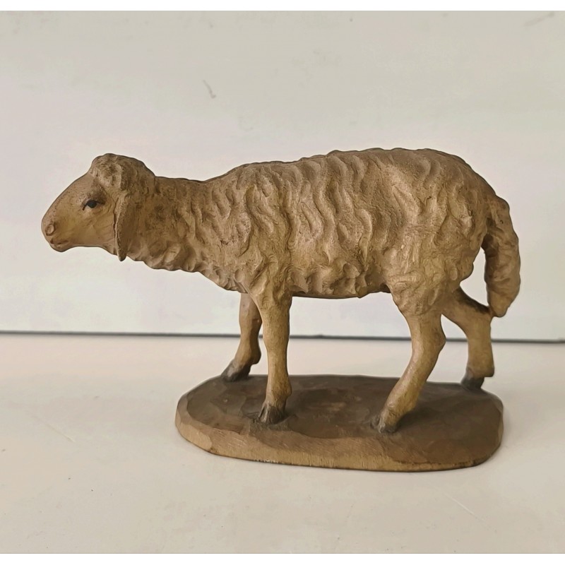 Anri Kuolt Pecora in piedi statuina presepe in legno 12,5 CM Vintage